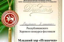 Хор 1 класса стал лауреатом II степени Республиканского хорового конкурса-фестиваля, проходившего 11 марта 2017 года в зале Нижнекамского музыкального колледжа им. С. Сайдашева. Поздравляем юных музыкантов и художественного руководителя Гульнару Нурмухамедову, концертмейстера Капитолину Колчанову