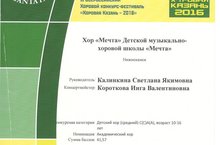 24 января 2016 года в г.Казань детский коллектив хор "Мечта" принял участие и стал Лауреатом I степени во II Всероссийском благотоворительном конкурсе-фестивале "Хоровая Казань-2016". Руководитель Калинкина Светлана Якимовна, концертмейстер Короткова Инга Валентиновна.