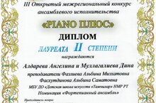 Поздравляем фортепианный дуэт Алдареву Ангелину и Муллагалиеву Дину, учениц 2 класса отделения 'Музыкальное искусство" (преподаватели: Фазлиева А.М., Фасхутдинова А.С.) #структуранабазегимназии№1, которые сегодня достойно представили нашу школу на III Открытом межрегиональном конкурсе ансамблевого исполнительства "PIANO ПЛЮС" и были награждены Дипломом лауреата II степени. Желаем юным пианистам и их преподавателям дальнейших творческих успехов и новых побед!