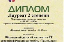 Поздравляем Образцовый детский коллектив РТ хореографический ансамбль "Тамчылар" с замечательным результатом в конкурсе! Ребята стали лауреатами ll степени заочного Международного творческого конкурса "ART МОЗАИКА" в рамках Национального проекта "Фестиваль искусств". На суд жюри «Тамчылар» представил мордовский танец "Узоры Мордовии". Молодцы, ребята! Желаем ребятам и преподавателям дальнейших творческих успехов!