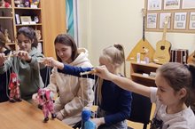 Музейный урок на тему" И...оживают куклы" состоялся в музее "Галерея творчества" Детской школы искусств. Учащиеся отделения "искусство театра", которые и стали участниками урока, не только освежили в своей памяти историю рождения театральных кукол, но и поработали с куклами-марионетками. Практическая часть музейного урока заключалась в том, что ребятам предстояло пофантазировать и из представленных материалов сделать елочные игрушки, которые впоследствии можно было бы использовать в кукольном спектакле.