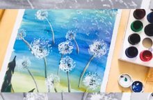Пора одуванчиков! Как только не называли на Руси это целебное растение:одуван, пустодуй, ветродуйка, летушки, воздушный цвет, еврейская шапка, кульбаба. За раннее цветение и целебные свойства его называли еще «мартовским кустом», «эликсиром жизни», «бабушкиной травой». Рисование композиции на тему «Одуванчики», изучение свойств белой краски на занятиях по основам изобразительной грамоты и рисования. Преподаватель Закирова Диляра Фаридовна, структурное подразделение на базе гимназии № 2.
