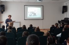 В рамках акции "100 дней до Победы" для учащихся отделения "Музыкальное искусство" структурного подразделения на базе гимназии 2 состоялся урок - лекция "Помним. Чтим. Гордимся!" Преподаватели Аннаева Г.М. и Кадырова Р.А. рассказали о событиях Великой Отечественной войны, о героях-патриотах, о подвигах Мусы Джалиля и его соратников. Ребята с удовольствием слушали стихи о войне, посмотрели документальный фильм о М. Джалиле.