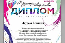 Преподаватели структурного подразделения МБУ ДО "Детская школа искусств"Тамчылар" на базе гимназии 25 Наталья Зайнуллина, Елена Кариева, Анна Праздникова, Татьяна Шадрина в составе инструментального ансамбля "Великолепный квартет" приняли участие во Всероссийском конкурсе искусств "Территория таланта" и стали лауреатами 1 степени! Поздравляем преподавателей с победой и желаем дальнейших творческих успехов!