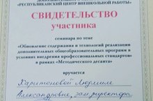 Заместитель директора по учебно-методической работе Харитонова Л.А. приняла участие в Республиканском семинаре "Обновление содержания и технологий реализации дополнительных общеобразовательных программ в условиях внедрения профессиональных стандартов", в рамках "Методического десанта", организованным Республиканским центром внешкольной работы"