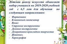 Детская школа искусств объявляет набор учащихся на 2019-2020 учебный год с 6,5 лет для обучения по следующим направлениям: