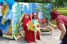 Фотозона по сказке "О рыбаке и рыбке" пользовалась популярностью среди жителей города. Все хотели оставить себе на память фото с золотой рыбкой. -