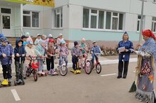 Велопробегом вокруг детского сада закрепили правила использования велосипеда и самоката.