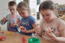 Во время художественно-творческой деятельности каждый педагог проявил свою фантазию и талант и вместе с детьми подготовили работы для выставки в разных техниках: раскрашивали расписное яйцо, мастерили открытки к Пасхе, оформляли коллективные работы.