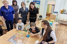 Старшие дети- волонтёры познакомили малышей с техникой рисования солью