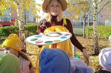 Ребят ждали интересные приключения в осеннем лесу. Они побывали в гостях у Бабы Яги, Королевы Красок, Гнома. Дети с удовольствием выполняли их задания, вместе пели осенние песни, играли.