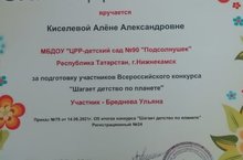 В честь дня защиты детей воспитаница старшей группы 11 Бреднева Ульяна учавствовала во Всероссийском конкурсе "Шагает детство по планете" вместе с воспитателем Алёной Александровной и получила Диплом 1 степени