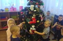 Малыши 14 группы прощались с ёлкой,водили хоровод,пели песни,ребята все дружно и аккуратно складывали ёлочные игрушки в коробки.