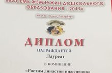 Поздравляем Киселеву Алену Александровну, Бульхину Гузаль Рашидовну и Логунову Нонну Викторовну с Дипломом лауреата во Всероссийском конкурсе 8 жемчужин дошкольного образования в номинации " Растим династии инженеров". Молодцы!))