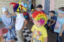 18 июня День юмора и смеха. Воспитанники 11 группы и 8 группы прекрасно провели время на прогулке и в группе. Студенты педагогического колледжа,совместно с инструктором по Физо Грязновой Н.М. организовали увлекательное развлечение. Дети соревновались в ловкости,быстроте,поиграли в игры наоборот,а потом все изобразили в своих рисунках. Веселые клоуны( сами дети) смешили и показывали фокусы для сверстников. -