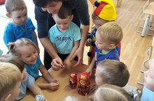 В рамках недели русской культуры ,ребята 3 группы,воспитатель Гузаль Рашидовна, проиграли в русские народные игры "Волк и зайчата", " У медведя во бору". В гости пришёл Петрушка, познакомились с матрёшкой и украсили её наряд,с помощью карандашей,красок.