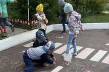 Ахметзянова Марина Михайловна,воспитатель группы#14, провела беседу по ПДД, повторила с детьми правила поведения на улице. Поиграили в игру " Я потерялся!", тем самым закрепили алгоритм действий "если я потерялся", дети закрепили знания о своих ФИО,домашнем адресе, ФИО родителей. Далее детям предложили изобразить все увиденное и услышанное с помощью карандашей.