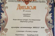 Поздравляем театральный кружок "Шкатулку сказок" и её руководителя Кужабекову Наталью Тимирбаевну с победой во Всероссийском конкурсе для дошкольников " Тропинки к успеху" в номинации " В гостях у сказки" Диплом 2 степени! Молодцы!!!!Поздравляем!!!