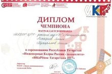 18 февраля воспитанники подготовительной к школе группы № 5 Мухарямов Эмиль и Астафьев Эмиль приняли участие в республиканских соревнованиях «Инженерные кадры России – дошколята. ИКаРенок Татарстана 2017», которые проходили в Лицее № 35 г.Набережные Челны. На конкурсе дети защищали инженерную книгу, принимали участие в испытаниях «Агро-исследователи», «Конструкторский цех», «Монтажный цех». Всего в соревнованиях приняли участие 12 команд из ДОО Республики Татарстан. Наши воспитанники выступили успешно и были награждены дипломом чемпиона.