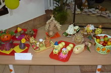 Сегодня в нашем детском саду была организована выставка " Овощная фантазия". Экспонаты были изготовлены родителями, детьми и педагогами из овощей и фруктов. Получилось очень ярко и красочно. Спасибо всем фантазерам!!