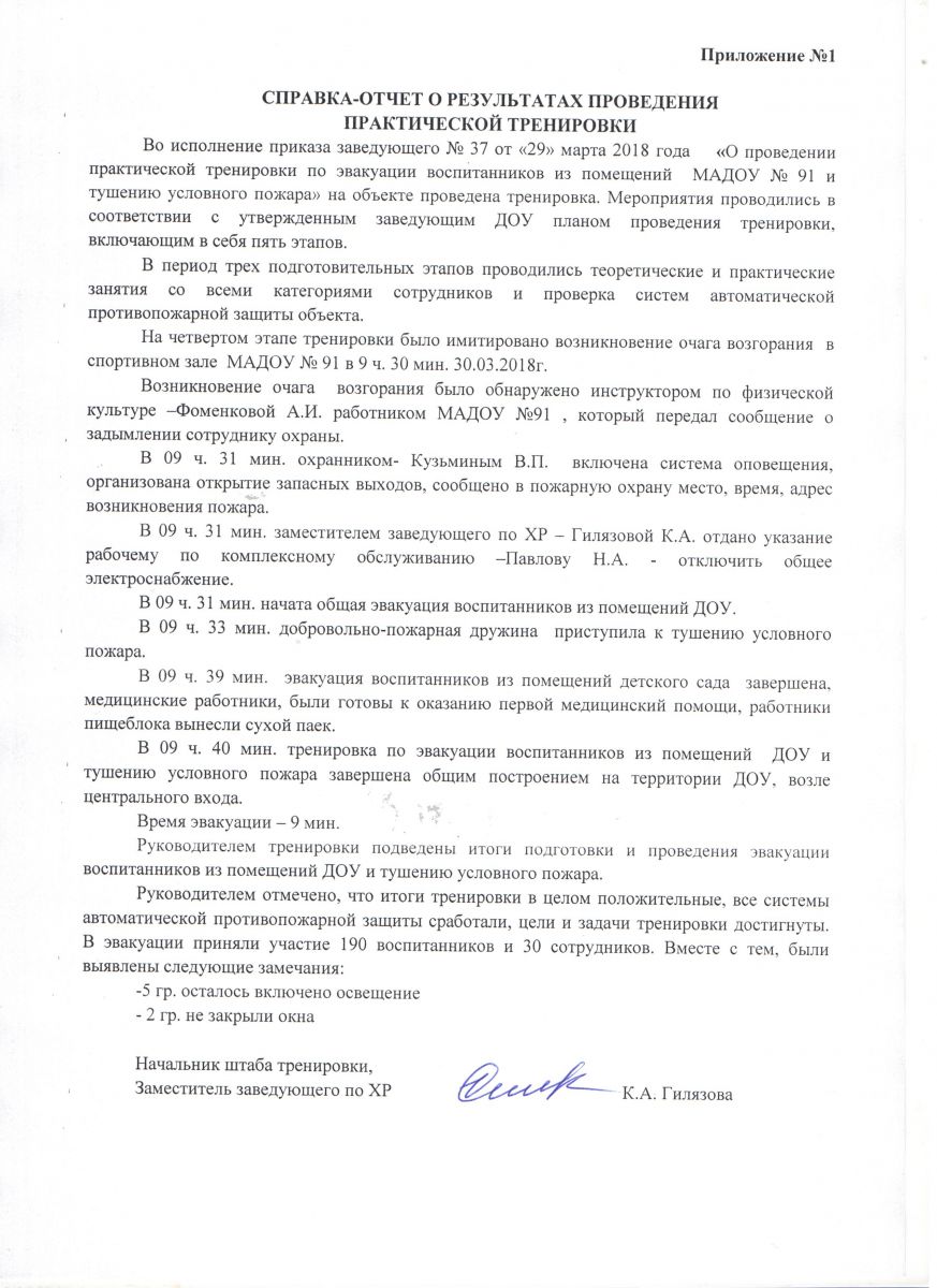 Проведение практической тренировки по эвакуации воспитанников из помещений МАДОУ №91 и тушению условного пожара
