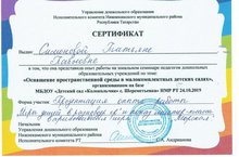 Участие воспитателя Балкиной Татьяны Николаевны в зональном семинаре педагогов ДОУ " Оснащение пространственной среды в малокомплектных детских садах"