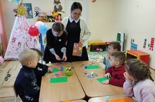 Для воспитаников Детского сада "Лсточка" был проведен мастер -клас учащимися" Верхнеуратьминский ООШ"по изготовлению открытки.