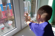 После беседы и просмотра видео о нашей стране, у которой 12 июня день рождения, воспитанники совместно с воспитателями решили украсить празднично окна в группе. -
