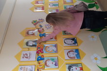 Сегодня дети подготовительной группы подготовили сюрприз для педагогов. В холле детского сада были развешаны портреты нарисованные детьми и педагогам предлагалось найти себя. Ребята тоже попробовали узнать в этой галерее работников детского сада.