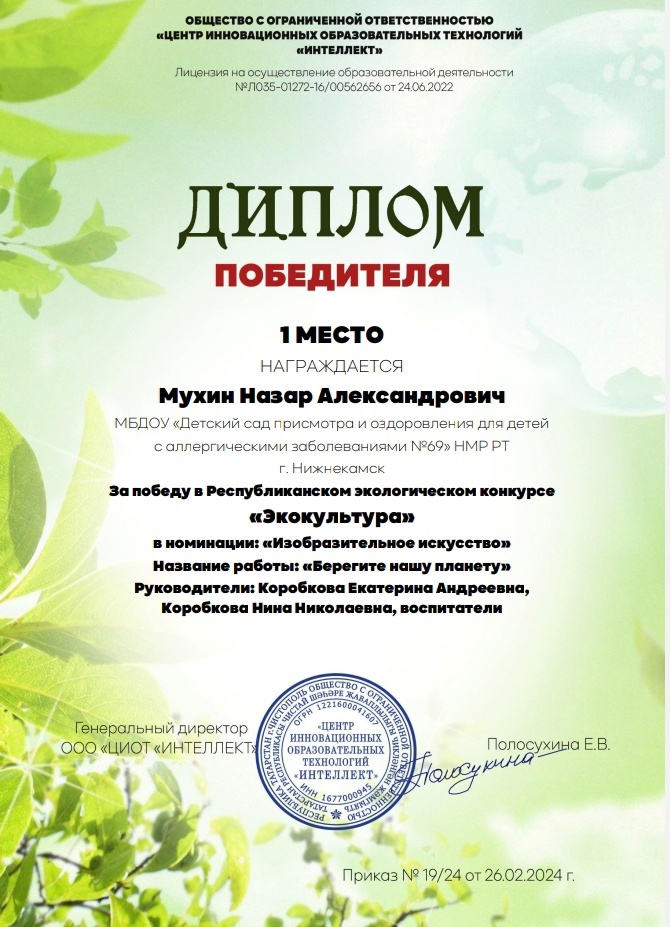 Муниципальное бюджетное дошкольное образовательное учреждение «Детский сад присмотра и оздоровления для детей с аллергическими заболеваниями №69» Нижнекамского муниципального района Республики Татарстан
