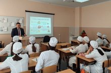 В Нижнекамском медицинском колледже прошла встреча с главным врачом ГАУЗ "ДГБ с ПЦ" Алексеем Толстиковым и главной медицинской сестрой Ильсияр Мотыгуллиной.