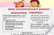 Центр интеллектуального развития дошкольников «Умничка» приглашает детей 4-7 лет на развивающие занятия по подготовке к школе.