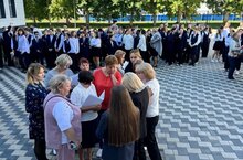 По традиции перед началом занятий в актовом зале прошла торжественная линейка, на которой происходило поднятие Флагов и прослушивание Гимнов Российской Федерации и Республики Татарстан.