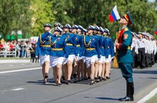 Студенты Нижнекамского педагогического колледжа взвод девушек приняли участие в Параде Победы.