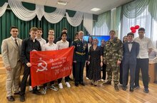 Первым делом на занятии почетные гости торжественно вручили директору Нижнекамского педагогического колледжа Астадурян Разине Миннахметовне "Знамя Победы" - штурмовой флаг 150-й ордена Кутузова II степени Идрицкой стрелковой дивизии, водружённый 1 мая 1945 года на крыше здания рейхстага в городе Берлине.