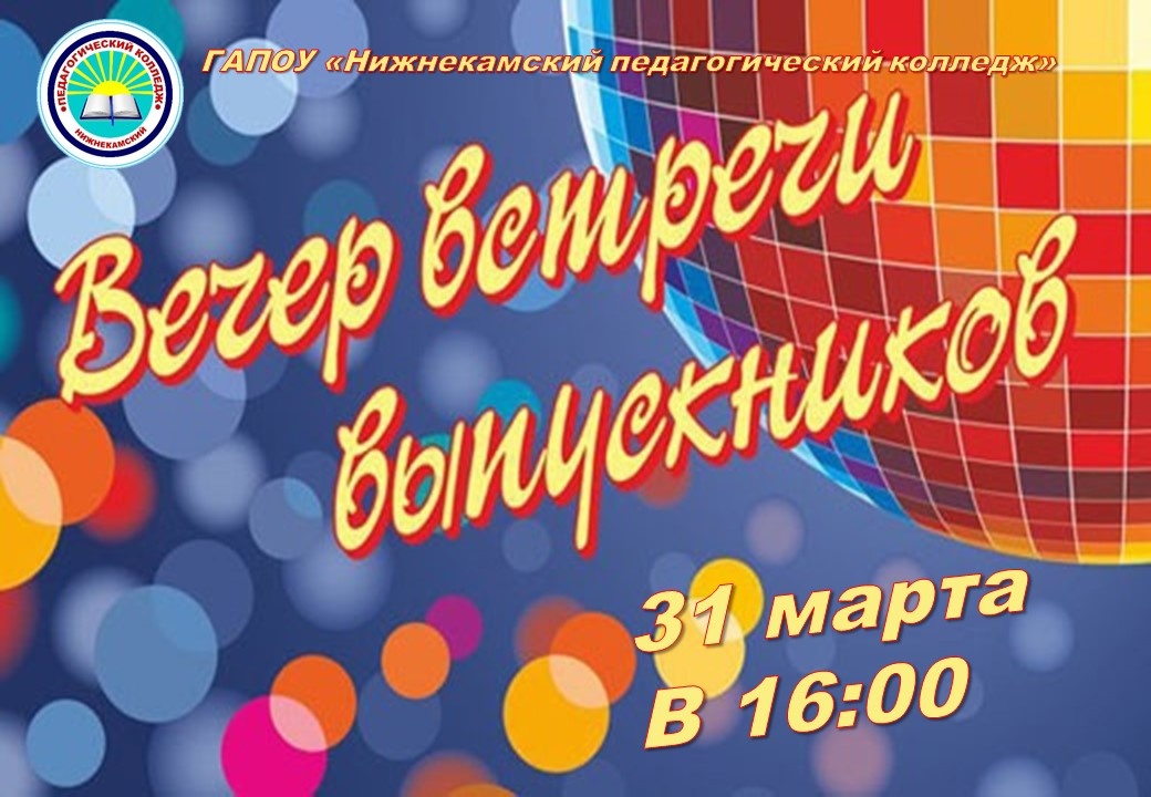 Нижнекамский педагогический колледж приглашает Вас 31 марта в 16:00 в актовый зал на Вечер Встречи Выпускников.