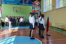 Первая учебная неделя закончилась с торжественной линейки, на которой происходил вынос Флагов и прослушивание Гимном Российской Федерации и Республики Татарстан.