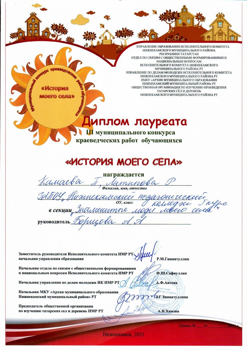Опубликовано: 17.03.202117 марта прошел III муниципальный конкурс краеведческих работ обучающихся и молодежи «История моего села», где наши студенты Камаева Полина и Липатова Рената под руководством преподавателя Борщевой Аделины Артуровны стали луреатами.