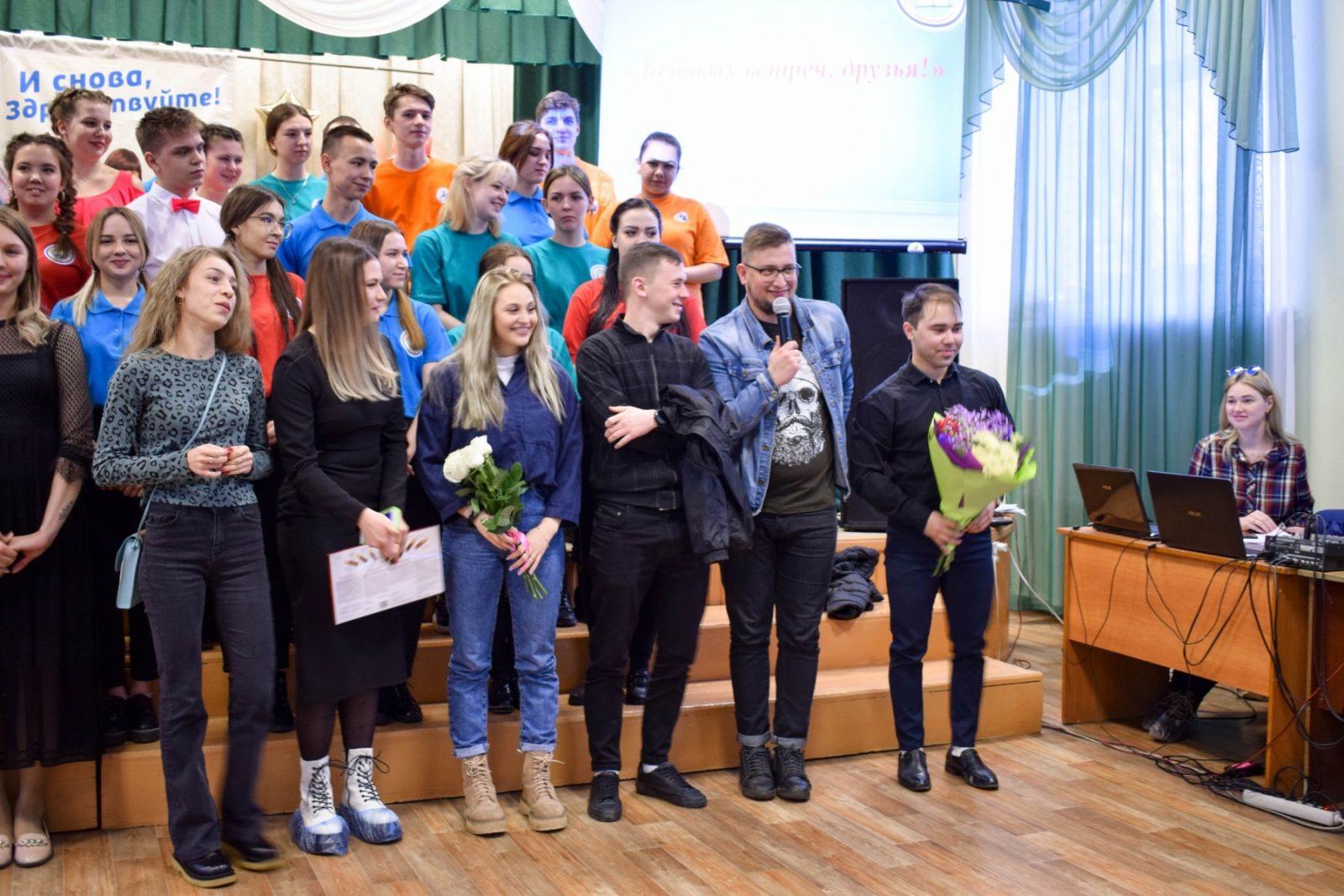 Опубликовано: 04.04.2021Вечер встречи выпускников- хорошая добрая традиция в жизни нашего колледжа. Каждую последнюю пятницу марта бывшие студенты собираются вместе, чтобы пообщаться, увидеть своих преподавателей и вновь вернуться в волшебный студенческий мир. Некоторые из выпускников встречаются вновь через 5, 10, 15, 20, 25 лет. В праздничной и дружеской атмосфере вспомнили яркие и смешные моменты, участвовали в весёлых конкурсах, любовались прекрасным концертом. Цветы, улыбки, смех, юмор, тёплые объятия- все главные составляющие вечера встречи выпускников были на празднике.