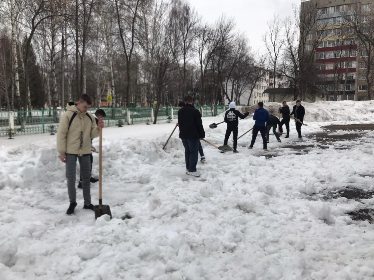 Опубликовано: 06.04.2022Акция «Снежный десант» продолжается.Студенты трудятся на территории колледжа.