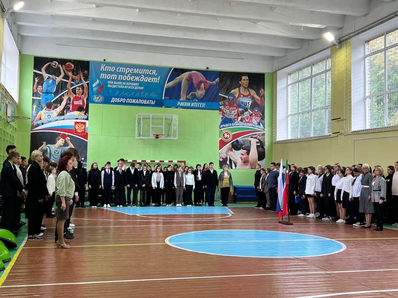 Опубликовано: 16.09.2022Очередная неделя подошла к концу и по традиции закончилась с торжественной линейки, на которой происходил вынос Флагов и прослушивание Гимном Российской Федерации и Республики Татарстан.