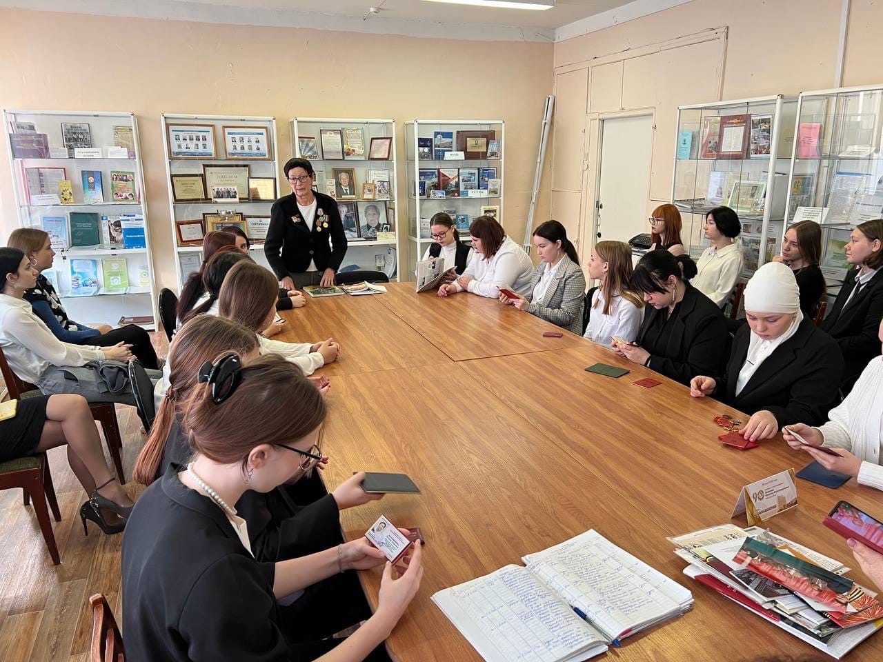 Опубликовано: 18.11.202217 ноября музейный урок для студентов 713 группы педагогического колледжа провела Наговицына Татьяна Андреевна, Отличник Нефтехимпрома СССР, Заслуженный работник культуры РТ, общественный деятель, заместитель председателя Совета ветеранов Нижнекамского муниципального района, член Союза журналистов РТ и СССР.