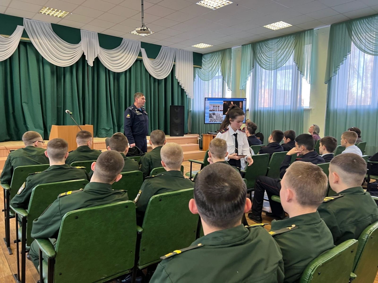 В актовом зале Алексей Юрьевич ознакомил студентов и будущих абитуриентов со структурой академии, реализуемыми специальностями подготовки, о условиях обучения и проживания в Академии, о взаимодействии с движением Юнармии, а также рассказали об учебно-материальной оснащенности Академии.