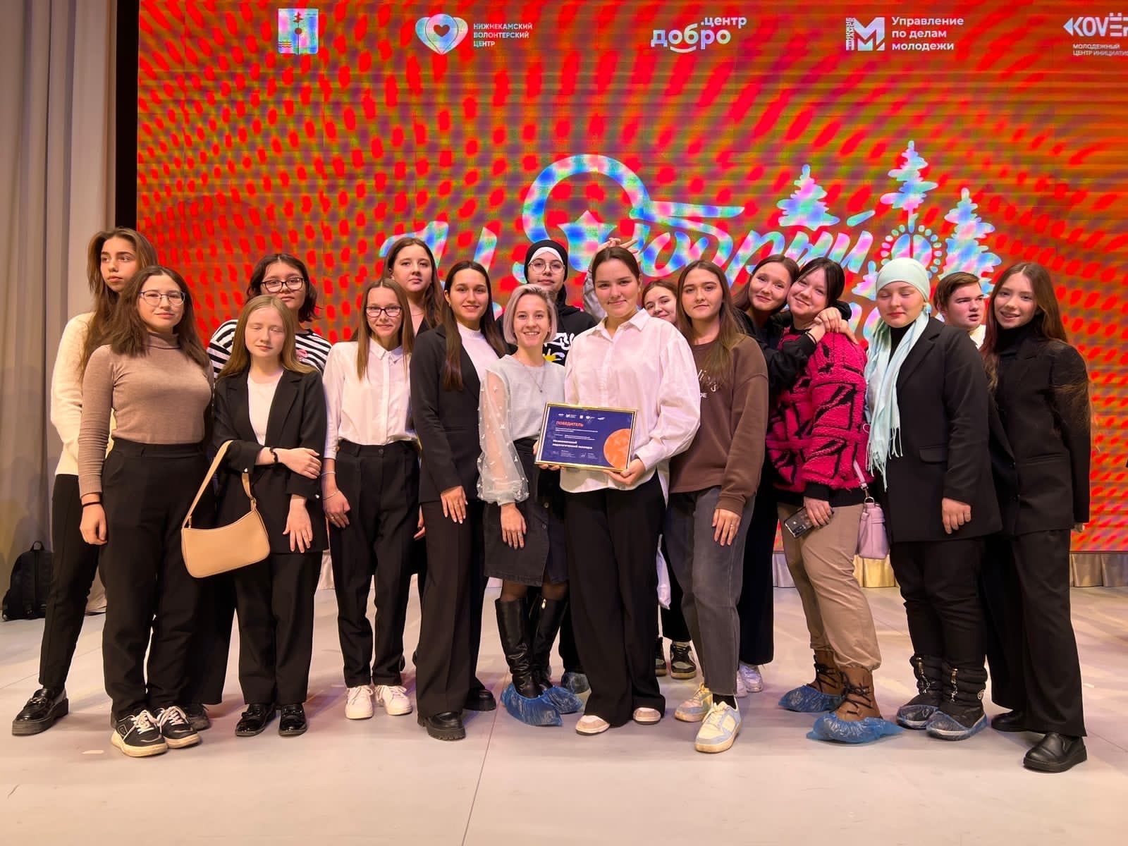 Опубликовано: 06.12.2022В «Лицее 38» состоялось награждение конкурса «Добрый Нижнекамск». Наш штаб стал победителем в номинации «Волонтёрский штаб при среднем специальном учебном заведении»
