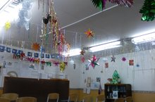 Всю неделю мы старались, рисовали, выризали, мастерили, что бы "Новый Год" чувствовался, как только переспупаешь порог нашей школы.