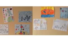 Ко Дню Косманавтики, начальный блок порадовал нас выставкой рисунков.