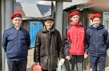 Юнармейцы поздравили с наступающим праздником - Днём Победы и с Юбилеем 90 летием, труженника тыла Сидорова Николая Ивановича.