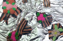 Как говорят сами ребята, это очень кропотливая работа, но очень интересная. И действительно, посмотрите, как необычно и ярко можно украсить георгиевскую ленту. Таким образом, почтить память погибших воинов Великой Отечественной войны. -