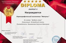 "Импульс" Лауреат II степени в Международном онайн конкурсе "5звёзд" 30.08.2018