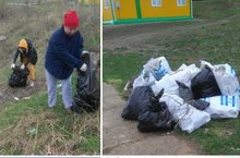 Коллектив ЦДТ "Радуга" на уборке территории.